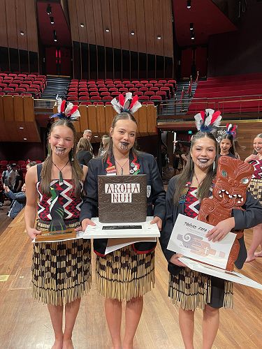 There were 14 schools in total and Te Kura O Hine Waiora performed a waiata tira (choral), a waiata ā-ringa (action song), and a haka. We were placed first place overall, in addition to receiving first place in the choral and action song. We were ecstatic to say the least and proud that all our hard mahi had paid off.