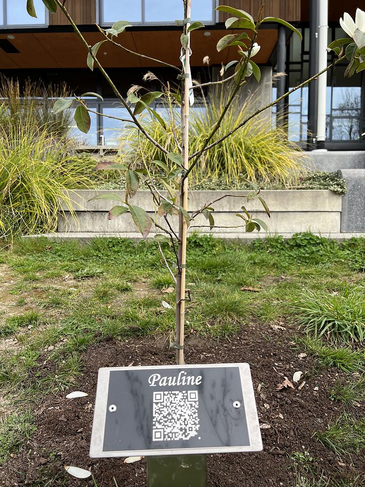 Bill added a plaque which simply reads "Pauline" with a QR code underneath. The QR code links to a website where people can add messages about the Pauline, which others can view.