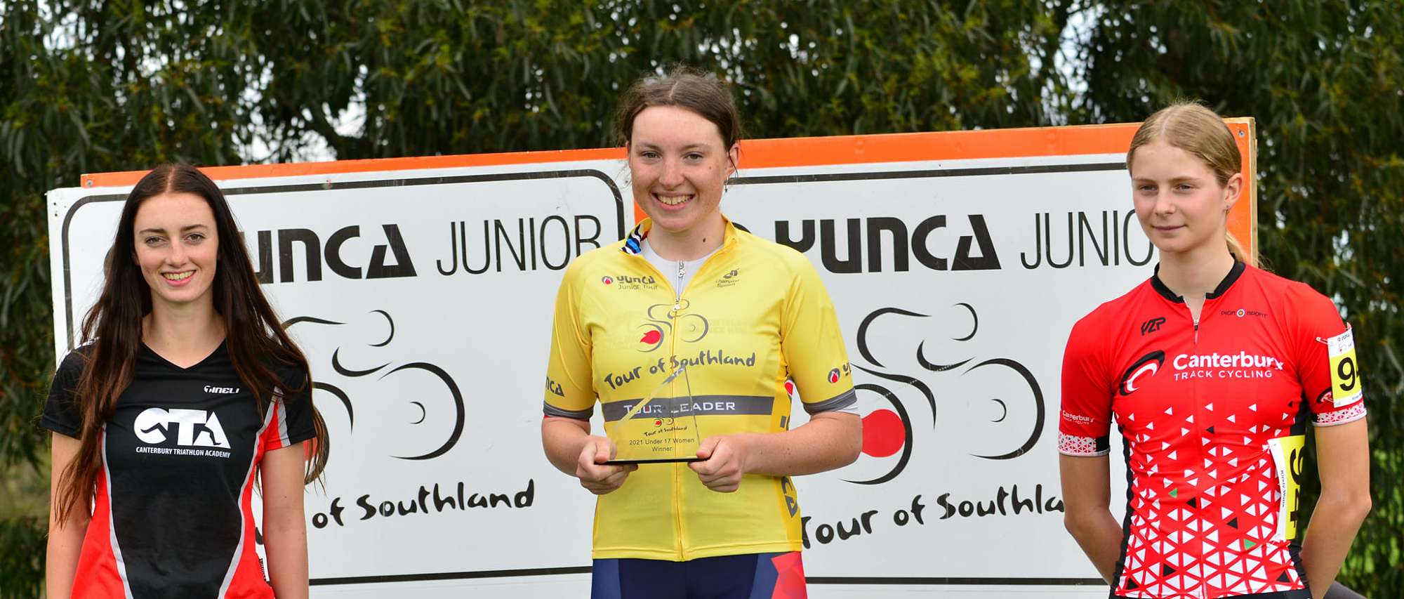 Alice Barnes also competed in the second round of the National Road Series last weekend in the Manawatu. She was able to turn the tables on Millie Donald (the Yunca winner) and bring home the trophy and yellow jersey.
