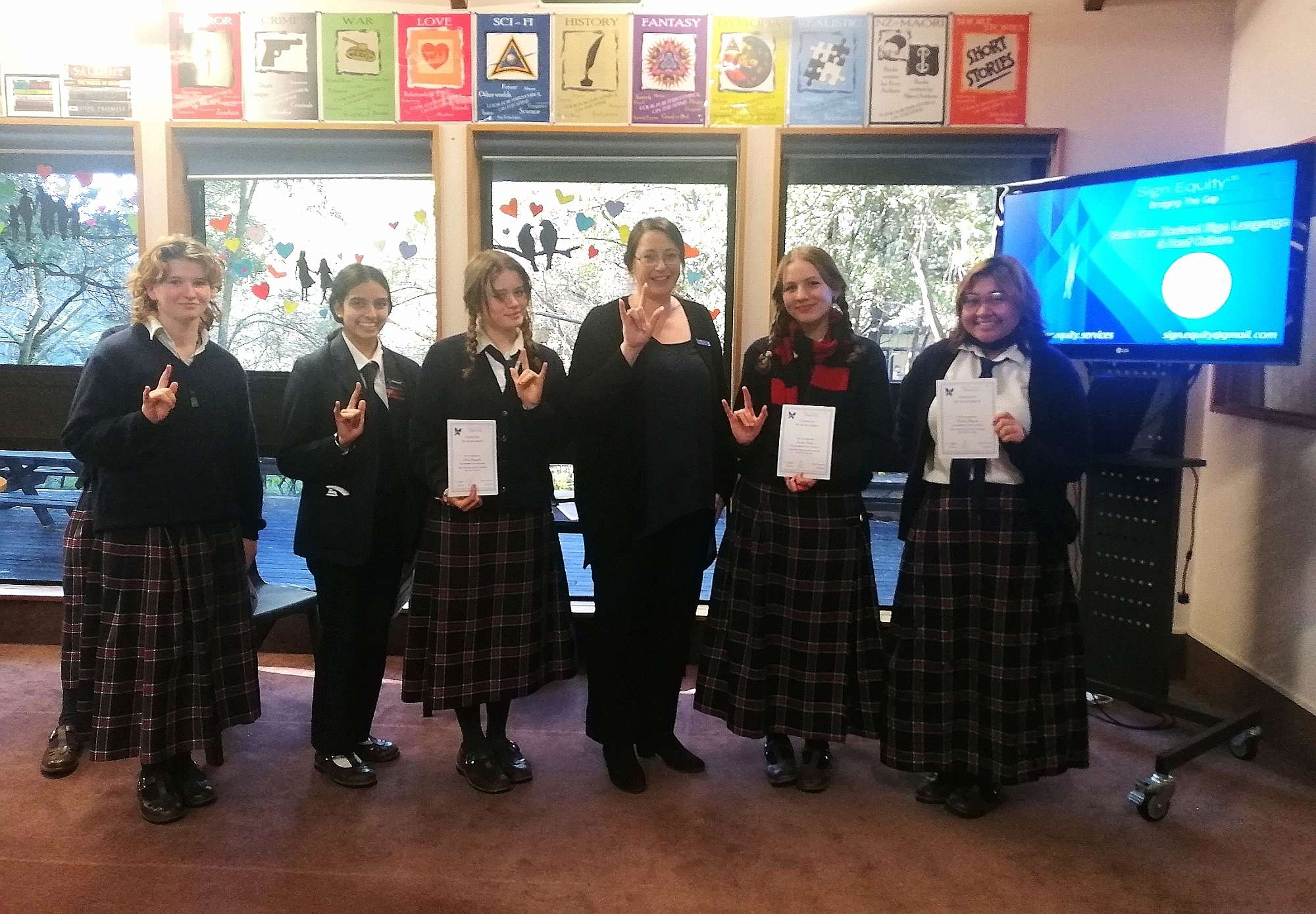 Our Term 3 sign language sessions finished this week. Basic sign language certificates are given to those students who successfully completed the course with our visiting tutor Julie Fraser from Sign Equity Ltd.