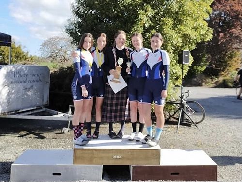 The overall winners of the Scotty Brown team time trial Series in U20 girls: Orla Fitzgerald, Amye Kellow, Lola Bryson-Boe, Alice Barnes, Paris Carroll