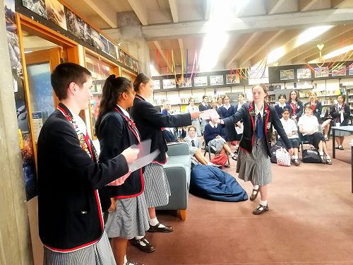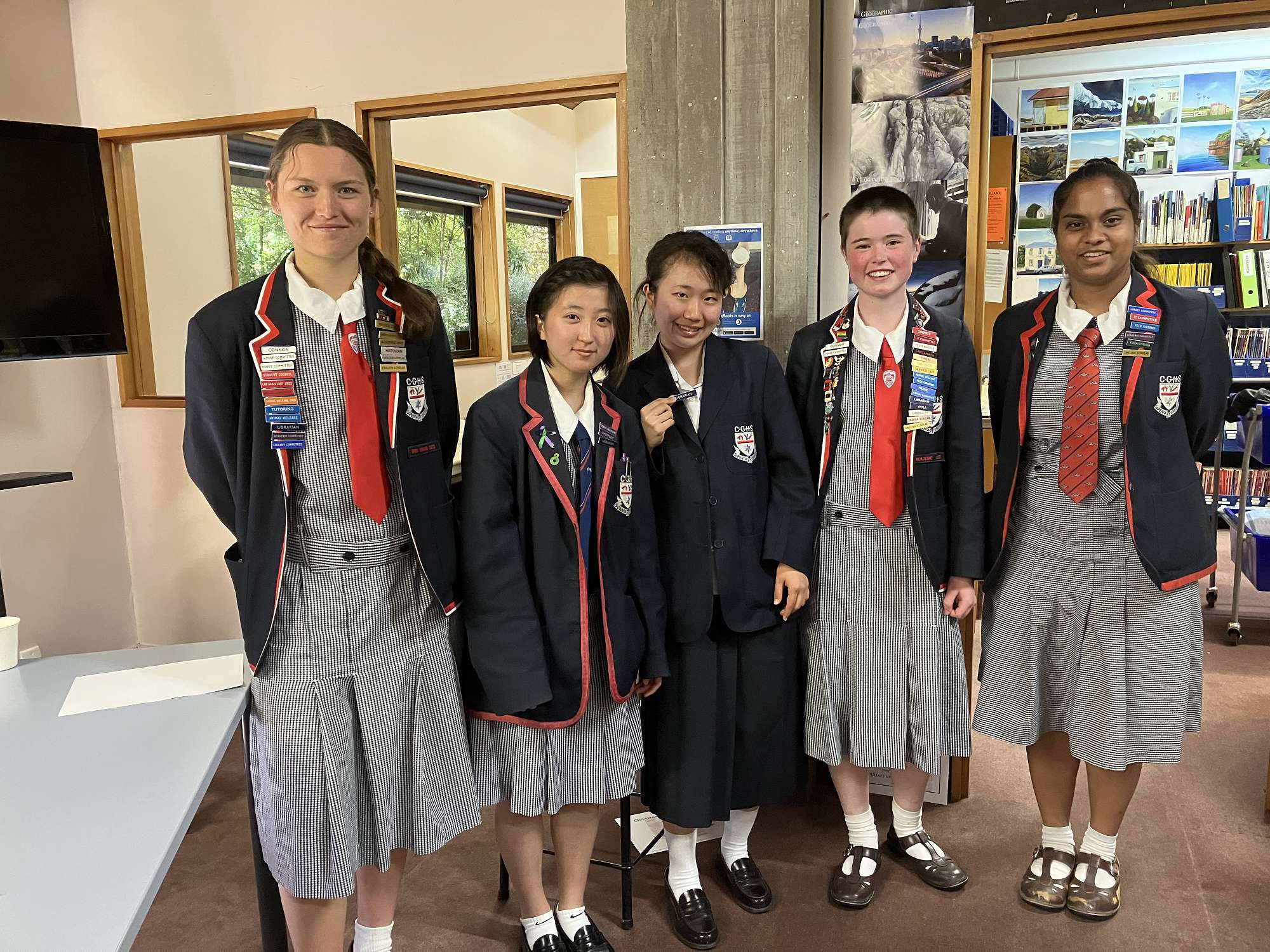 Christchurch Girls’ High School / Te Kura o Hine Waiora librarians’ organised a shared lunch event on Monday 27 March. In the event, Head Librarian, Ngarita MacKenzie and Deputies, Jasmine Glennie and Ceiarra Fernando distributed certificates of appreciation and badges to our fabulous student librarians.