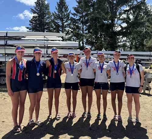 Silver - U17 Coxed Eight - Sienna Cochrane, Izzy Abley, Laura Ryall, Tallulah Leggett, Summer Smith, Grier Bowman, Abby Macpherson, Kaitlyn Mercer, Georgetta Haller (coxen)