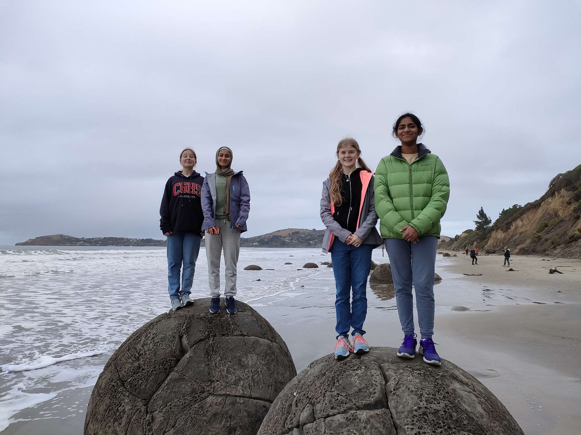 On the way to Dunedin the students visited Moeraki Boulders and Tunnel Beach in Dunedin, making the most of the fine and clear winter’s day. The students stayed the night with other schools at Tirohanga Scout Camp on the Tairei Plains.