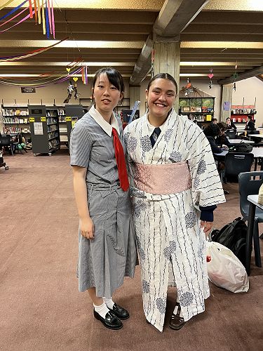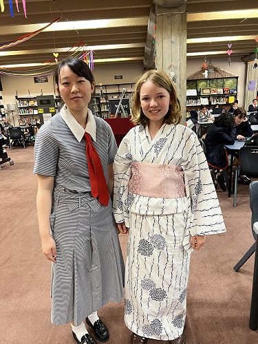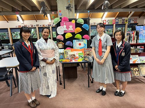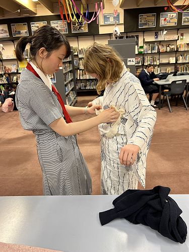 After her performance Rio helped some of our students to dress in the beautiful Kimono Yukata. Our librarians and other international students helped by making an amazing display about Japan and Japanese culture and having a fun event to teach students how to use Chopsticks.