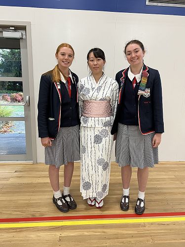 This week we were lucky to have one of our visiting International students from Japan , Rio Suzuki, perform a traditional Japanese dance or Nihon Buyo for our students in assembly. Rio has been practising this form of dance since she was 2 years old, and wore a traditional Kimono Yukata. In this dance the dancer moves around the stage with sliding feet and quiet movements to the accompaniment of solemn songs and music.