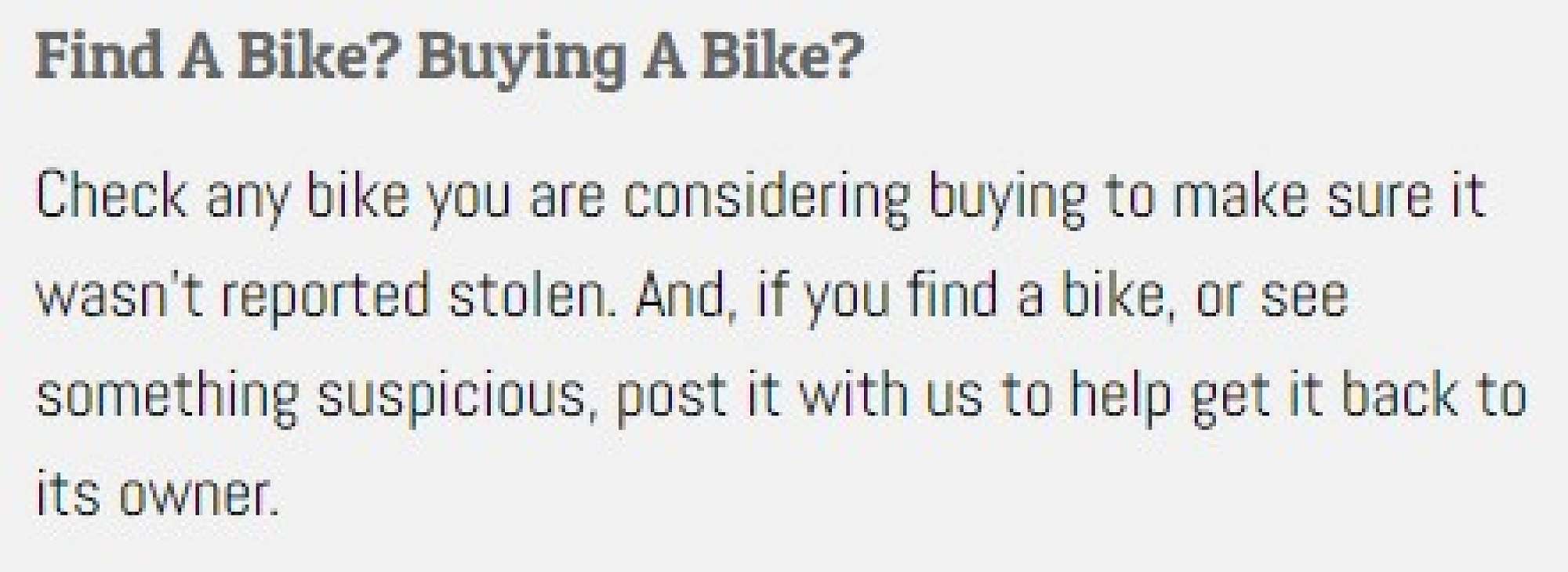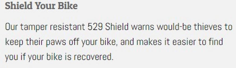 529 Garage is a website where you can register the details of your bike so that if it is stolen, it makes it easier for the police to contact you and re-connect you with your stolen bike - click on the following link: 529 Garage