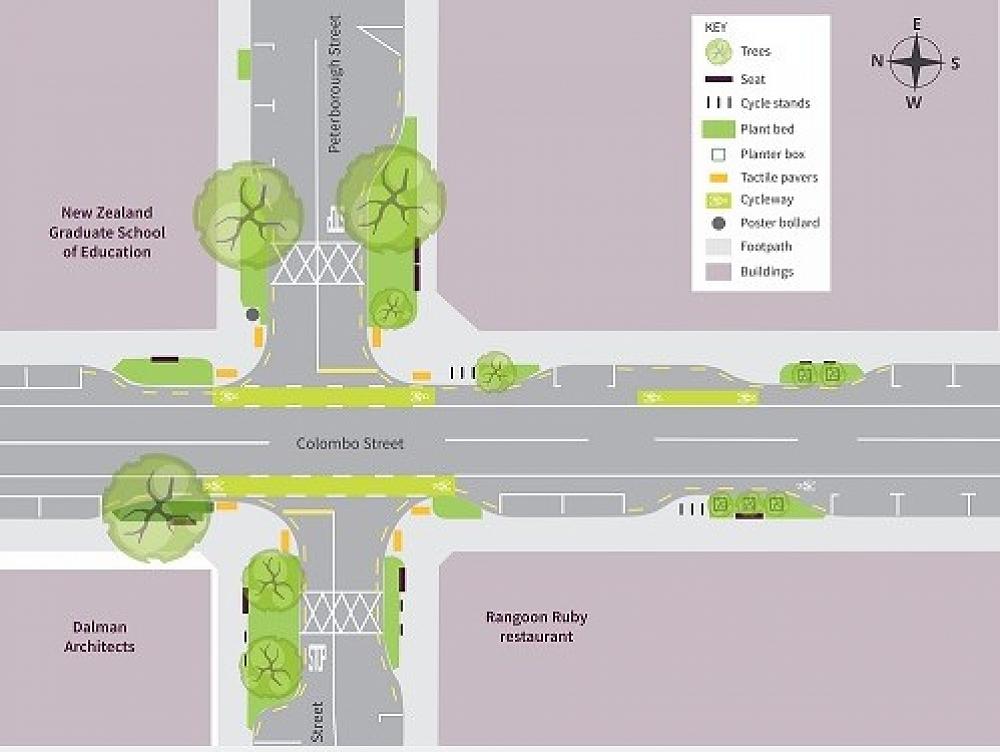 The project, which went out for public consultation last year, will involve adding painted cycle lanes on Colombo Street between the Town Hall and Bealey Avenue, and lowering the speed limit to 30km/h to make it safer for everyone. The central city stretch of Colombo Street, south of Kilmore Street, already has a 30km/h speed limit.