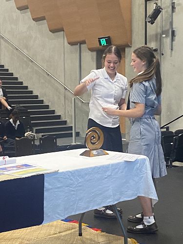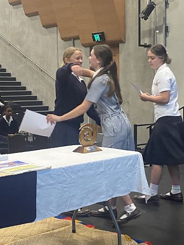 We started the afternoon with the awards section where Sophie Yarham and Sophia Smith were awarded the ‘Junior Rising Star’ awards for their contribution to our school whānau. Our other Whānau values awards recipients were as follows: