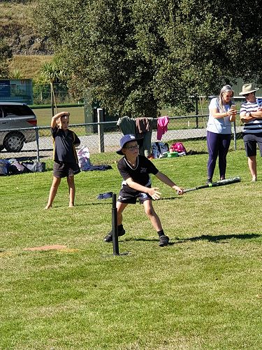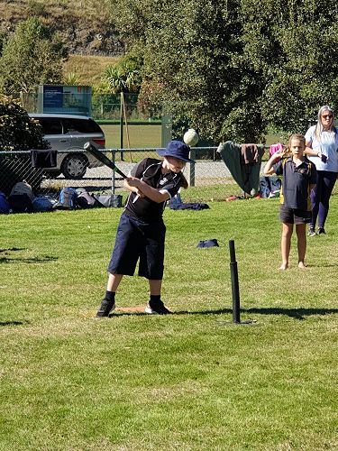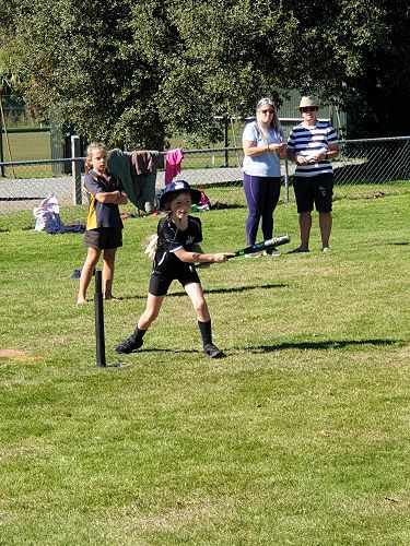 The sunny day got hotter as the day progressed and the students got better and sharper with their fielding, throwing and game play. Keen to bat, the students stroked well and ran fast between bases. The Year 3/4 students of Cheviot Area School were kept busy rotating around the seven diamonds with four games prior to lunchtime and another two games after. A great day had by all. A big thank you to Robyn Hall for the huge amount of organisation that goes into making an off-site event happen, also to Annabel Shield for her Tee ball sessions for PE, and to all the parents who transported, umpired, managed teams and supported the children.