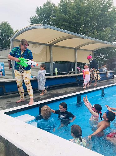 Rooms 1, 2 and 3 celebrated being back at school with a pool party last Friday afternoon. Here are some photos of the fun, bubbles and super soaker action. Well done Lexi 'Shark' Forrester on winning the dancing competition.