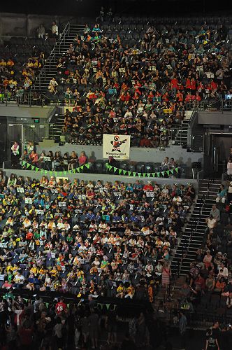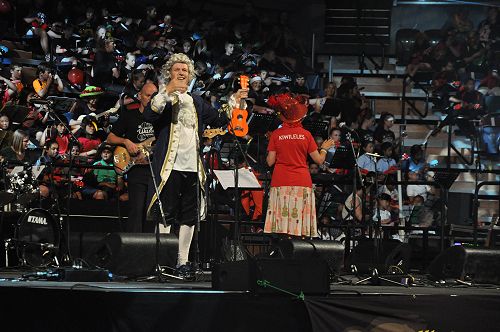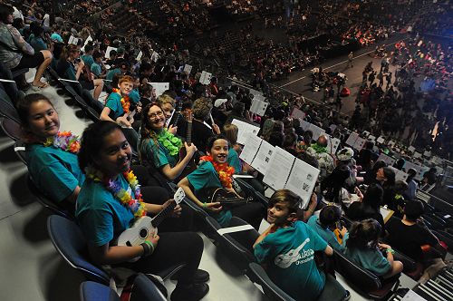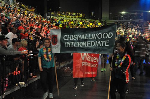 Mia and Princess paraded with the school banner before the massed music began with all 2500 ukulele players.