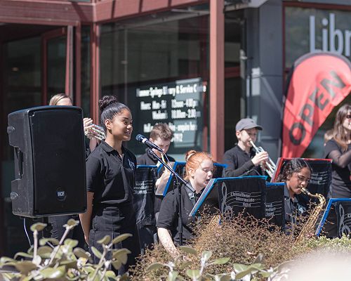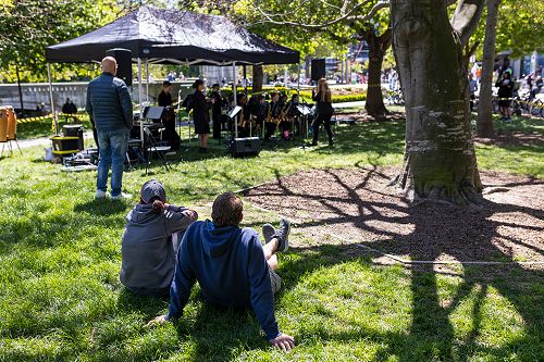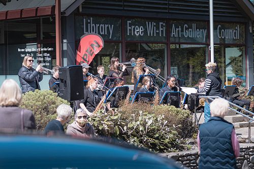 The next day they played in a secondary school's band afternoon and on Sunday played between Queenstown and Dunedin City Jazz adult big bands outdoors at Riverside Market. It was great to see the band's progress, camaraderie and wonderful standard of playing.