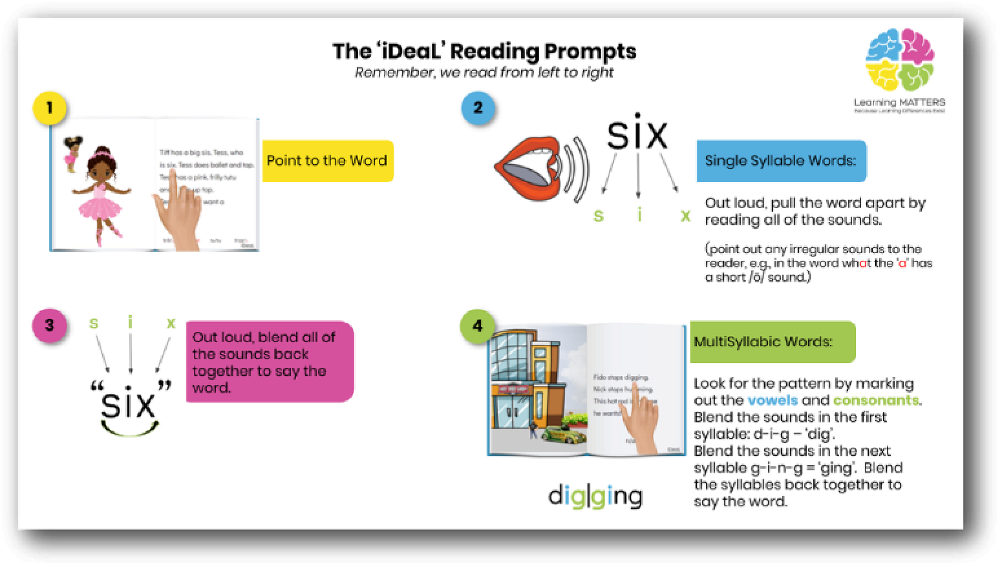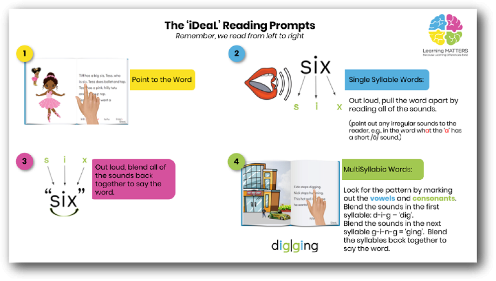 - Or they might bring home a word list to learn, a passage to read or a book for them to read to you. Help your child read each word on the page, rather than guessing or using the pictures as clues. The prompts below will help to guide you.