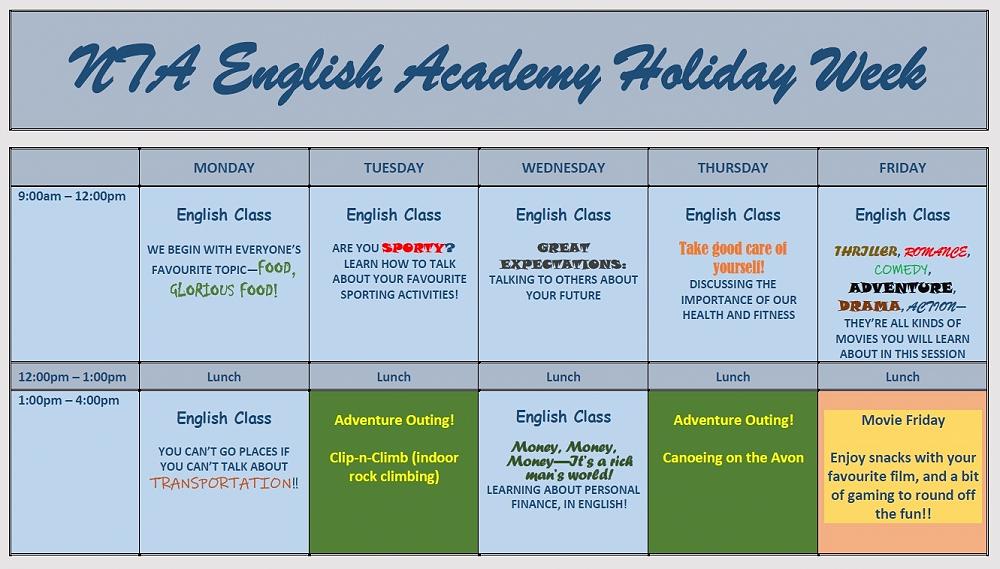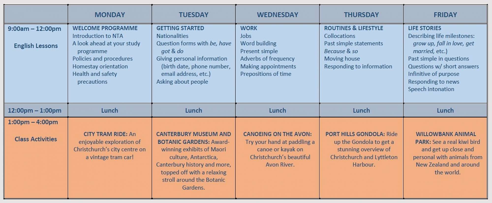 The NTA English Plus Activities Courses are designed especially for international students 14-18 years of age who want to combine English study with enjoyable group outings. Classes run weekly, six hours daily, Monday to Friday, for a total of 120 hours from 16 November 2020 at our inner-city location.