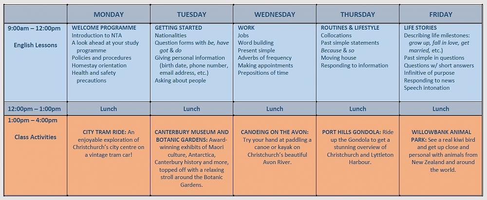 Morning classroom lessons are taught by highly qualified and experienced English-language tutors, and off-campus afternoon outings (the ‘active’ part of the course) are integrated into the schedule to give students valuable opportunities not only to enjoy the many leisure and recreational activities on offer in the Christchurch area but also to apply their classroom learning ‘out there’ in the real world.