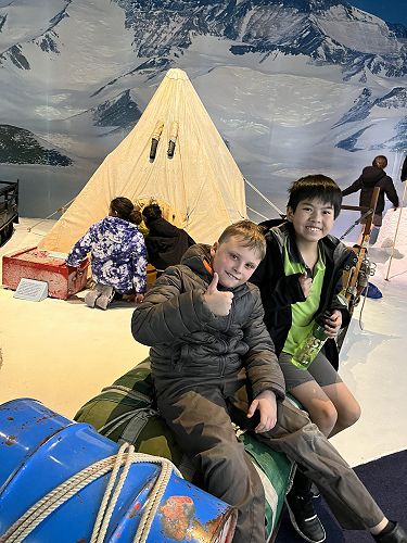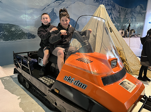 We explored how transport has been transformed for use on this remote continent - aeroplanes, ice-breaker ships, hagglund transport and the adapted tractors Sir Edmund Hillary used. We also got to meet huskies, watch the penguins being fed and explore the display that showed how things have changed in Antarctica over the years.