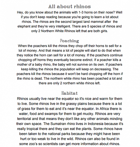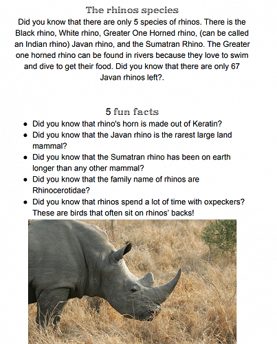 We have spent three weeks doing independent research about Rhinos, taking notes, collating information, and learning how to find reliable information on the internet.