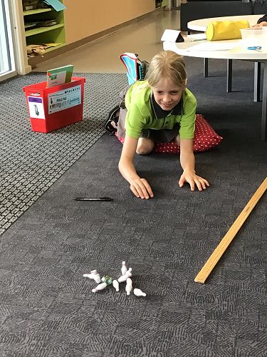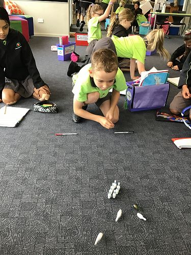 To extend our thinking and put our learning into a real life experience, we have been playing Ten Pin Bowling, writing our score as fractions, then converting the fractions into decimals. Each group also had to use their knowledge of measurement to create a bowling lane 50cm long to ensure that all games were played on an equal playing level.