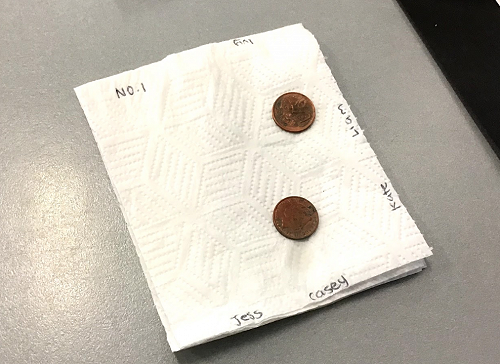 The aim was to see what would happen when you put two coins into a salt and vinegar mixture so it changed colour to a orangery black colour with an acidy smell.