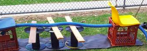 Loose Parts wish list: tyres, boxes, towels, spools, foam pieces or mats, sponges, cushions, PVC pipes or guttering, plastic bottles, ice cream containers, steering wheel, buckets, plastic plant pots, blankets, tarps, pool noodles, ropes, fabric, folding chairs, pegs... the options are endless!