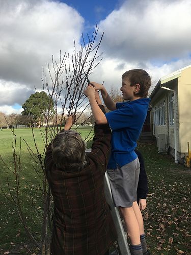Earlier in the term, we pruned and shaped our fruit trees which grow in a small orchard at the end of Room 26.