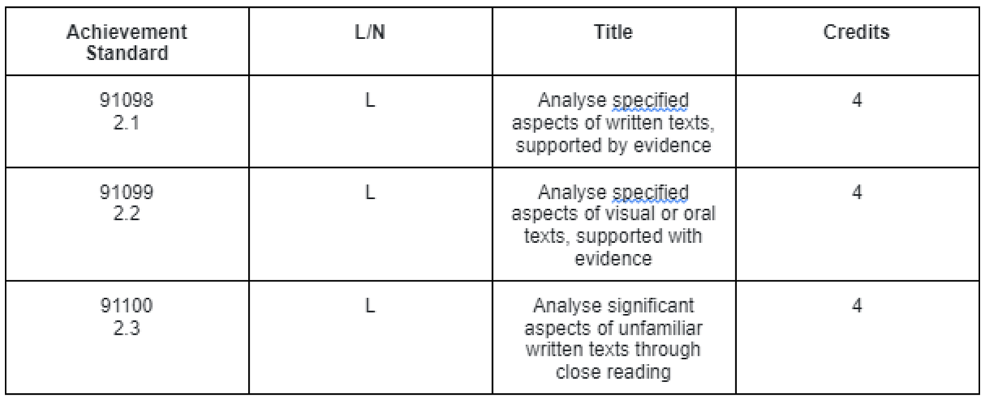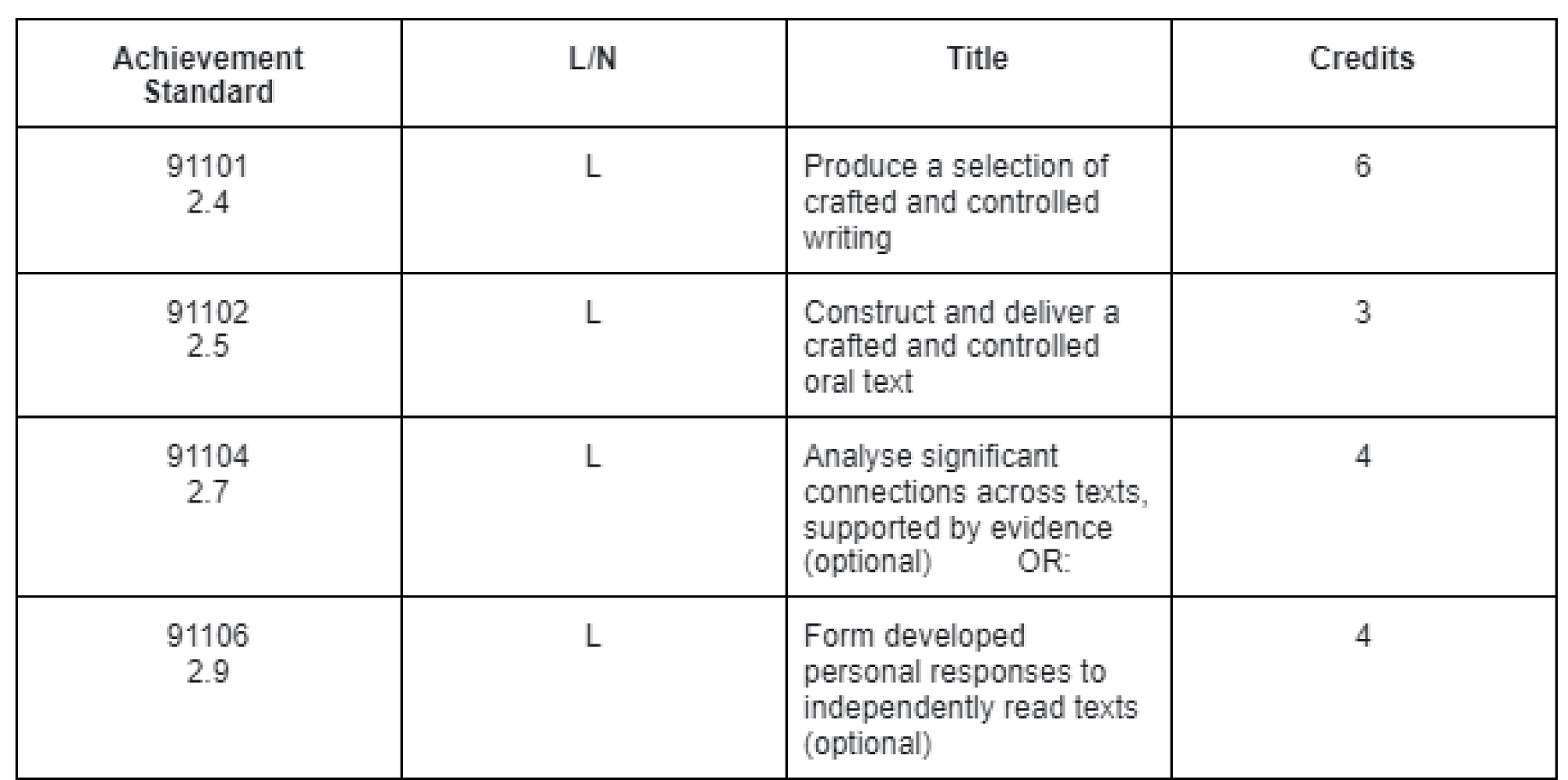 A key milestone at Level 2 is the gaining of Literacy Credits (five reading credits and five writing credits), a required first step towards University Entrance. Students who find English challenging will need to be alert to the separate criteria for Literacy.