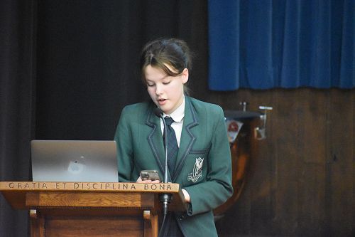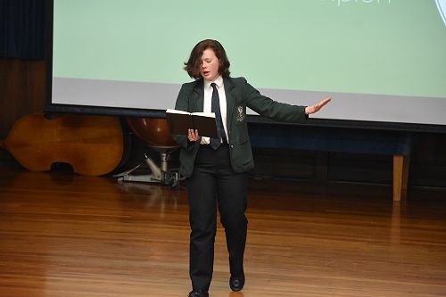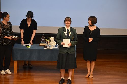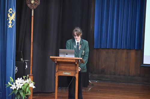 We were also treated to four prizewinning and thought-provoking speeches from four incredibly poised and intelligent young women: Zoe (Y13), Tessa (Y12), Sophia (Y11), and Lula (Y10). Interestingly, the fear of public speaking (glossophobia) is ranked as the world's number one phobia and is believed to affect about 75% of people across the globe. To see rangatahi deliver speeches with such confidence is truly inspiring and commendable! Further to the speeches, we were honoured to have three student poets, Grace (Y12), Tegen (Y11), and Emily (Y10) present their original work. Given the very personal nature of poetry, reading one's own work to a live audience is both terrifying and deeply rewarding. I doubt many of us would be courageous enough to put ourselves 'out there' the way these three young women did!
