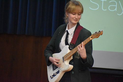 Many thanks go to our wonderful Arts Prefects, Brie and Juliette, for being such wonderful emcees and ensuring everything ran smoothly. These two Y13 leaders worked hard in the weeks leading up to the event and were an invaluable help during the rehearsals and preparations. We had all been looking forward to seeing Brie reprise her role as Rosie and play against Harper Milne (John McGlashan College) in a rendition of 'Take a Chance on Me', from the musical Mamma Mia!. Unfortunately, Brie had pretty much lost her voice and we were just grateful she could push on through to fulfill her Arts Prefect role!