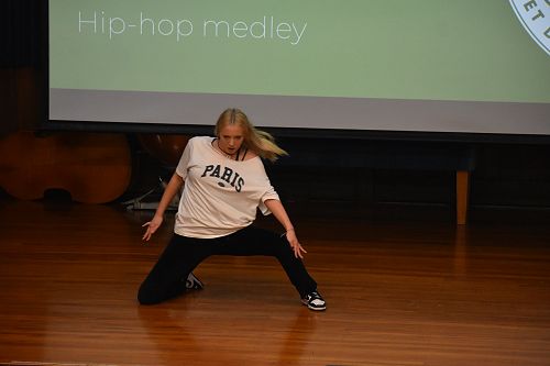 The Kapa Haka rupā, led by Tikaka Prefect, Elloise, and mentored by Matua Price and Whaea Andrew, opened and closed the performances with beautiful waiata and a stirring haka. Of particular note this year was Amber's mastery of the guzheng, and fantastic dancing from Kate (Y11), Yulia (Y10), Zara (Y12), Elloise (Y13), and the MPIRE crew. Two of our dancers (Zara and Jeila) are actually NZ representatives and are competing and achieving at the highest amateur level. The talents demonstrated in the performing arts by Grace (Y12) and Imogen (Y11), performing numbers including acting, dancing, and singing, were as extraordinary as ever - it's easy to imagine either of these two going on to have an illustrious career on stage! The reprisal of 'Super Trouper' from Monet (Y12), Alice (Y12), and Brie (Y13) was wonderful and managed to get the audience on their feet dancing and singing along.