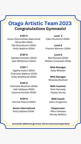 We are delighted to share with you the Columba students who have been selected to represent Otago in Women’s Artistic Gymnastics at the upcoming New Zealand Gymnastics Championships.