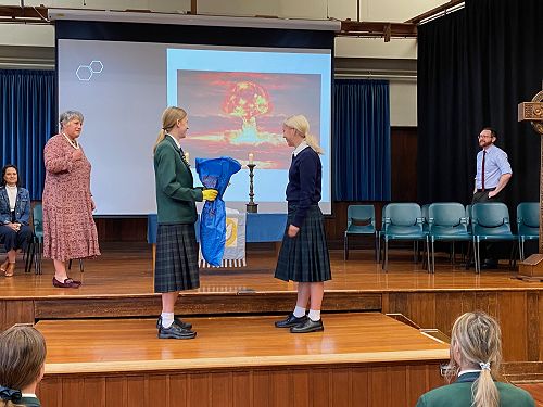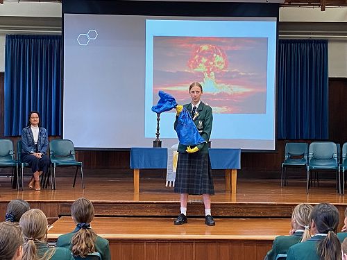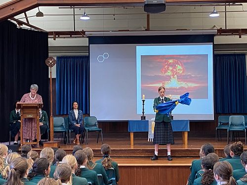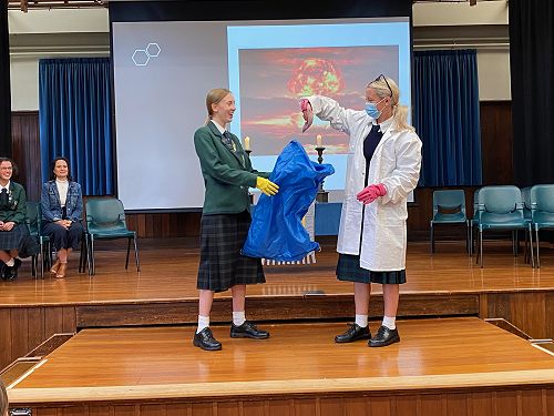 Chapel prefects, Misses Sophia Hessian and Mabel Lee, organised and led the first College chapel service of 2023. As a special treat, Mrs Duthie delivered a message cautioning us to take care with 'the most dangerous thing in the world'. Year 11 student, Miss Kate Finnie, was courageous enough to come up onto the stage and extract the most dangerous thing in the world from the sack in which it was being held. Kate's response of "Ewwwww..." when she pulled a tongue (ox's) out of the sack was priceless.