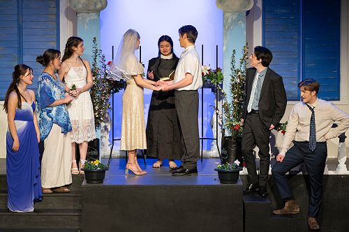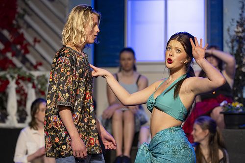 Other notable performances came from Grace (Y12) and Elloise (Y13) as Sophie's two best friends/bridesmaids. Their vocals and dancing were, as always, on point. Piyapat (Y12) as the wedding celebrant was a joy on stage and Keren (Y11) worked well with Bayfield High School's Lucas MacLeod to create a delightful duo of island buffoons. Glenn (Y11), Harper (Y11), and Evers (Y13) from John McGlashan College were incredible as Sophie's three 'possible' fathers and Donna's former lovers, with each bringing impressive talent to the stage. Joseph (Y10) from Trinity College made for a convincing Sky to partner with Leila's Sophie and showcased some truly impressive vocals and acting skills in his role.