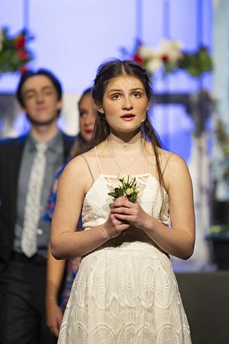 It was easy to forget you were watching school students with the calibre of the performances. Monet (Y12) as forty-year-old Donna Sheridan was a stand-out - somehow managing to convey a complex depth of love, pride, strength, remorse, and nostalgia far beyond her seventeen years. Monet's spotlit solo, 'The Winner Takes It All' was delivered with a palpable sense of heartache that moved many in the audience to tears. An accomplished actress, dancer, and vocalist, Monet was outstanding and left many of us convinced that she is on a path to stardom. Leila (Y12) played Monet's twenty-year-old daughter, Sophie, a young woman in the midst of an identity crisis while poised on the brink of marriage. Leila played the role with an air of innocence, sweetness, and class that provided the show with its emotional core. Anyone can relate to Sophie's desire to know the truth of who she is, and Leila's interactions with her three possible fathers and fiancé, Sky, were a poignant reminder to us all of how we must find our own inner strength before we can fully appreciate others. The connection between mother and daughter was beautifully portrayed by Monet and Leila and it is a testament to their acting skills that the number 'Slipping Through My Fingers', in which Donna grieves for the loss of her child as her daughter enters adulthood, was so moving. Leila's final number, 'I Have a Dream' was delivered with a sweetness and hopefulness that perfectly captured the transition from young adulthood to independence. Brava, Monet and brava, Leila!