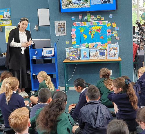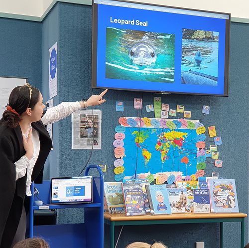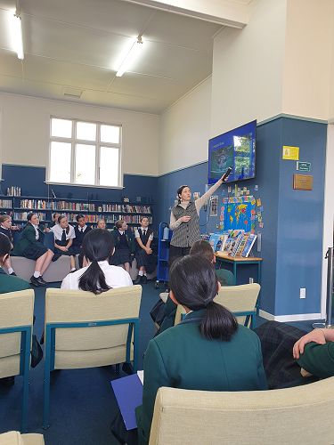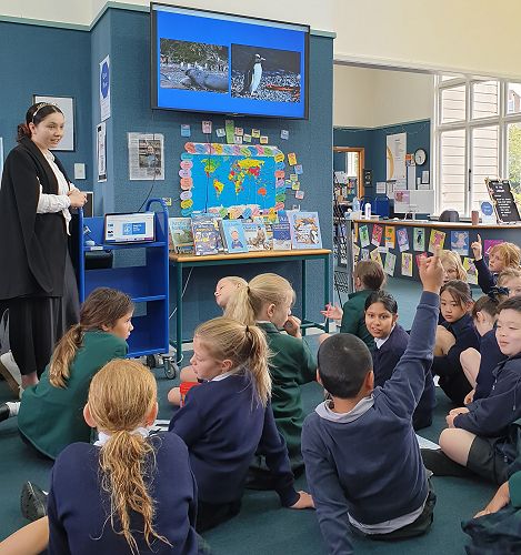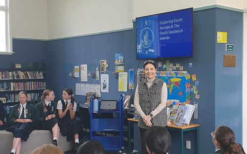 This week Mrs de Vos came to the library for two sessions to talk about her own intrepid journey to South Georgia in the Sub-Antarctic Islands. She spoke first to with the Year 5 and 6 classes first, and then the Year 8 classes. Fuelled by her love of history, animals, and the environment, Mrs de Vos went through a rigorous application process to be one of only 22 people to receive a scholarship to join the Antarctic Heritage Trust expedition, celebrating 100 years since Sir Earnest Shackleton's last voyage. Also on the trip were Helen Clark and Lydia Bradev, the first and only woman to reach the summit of Mount Everest without oxygen.