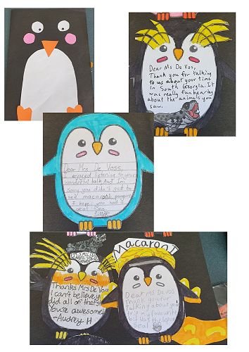 Mrs de Vos talked about the long journey to get there and described being thrown out of her bunk by 10m swells, enduring seasickness, seeing leopard seals and penguins up close, and experiencing a real polar plunge into very deep, dark water. The warmest day of her trip was three degrees and I can only imagine how much colder it would be jumping off ship into a rocking zodiac boat only to be sprayed with water. Another highlight of her talk was the audio of the noise thousands of penguins make. One student thought that elephant seals sounded like a lion eating a frog!