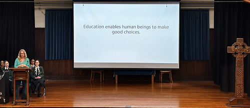 This year, our Columba prefects and Y13 ākonga have collectively raised $10,00 via the One Human Race campaign. Ms. Treadwell relayed her inspirational story about how she had come to found the 'So They Can' organisation and, in doing so, has gone on to make a life-changing difference for thousands of young women in Kenya and Tanzania. So They Can provides educational opportunities for young women who would otherwise be sold into child marriage from as old as twelve. The biggest take-away moment from her speech was the simple but impactful idea that: "Education enables human beings to make good choices". It was heartwarming to hear that our community's collective efforts have made education possible for fourteen girls in Africa today. Mrs Piebenga has said how proud she is of the leadership and efforts shown by our Year 13 rangatahi, who have modeled Columba's fundamental values of aroha and citizenship this year.