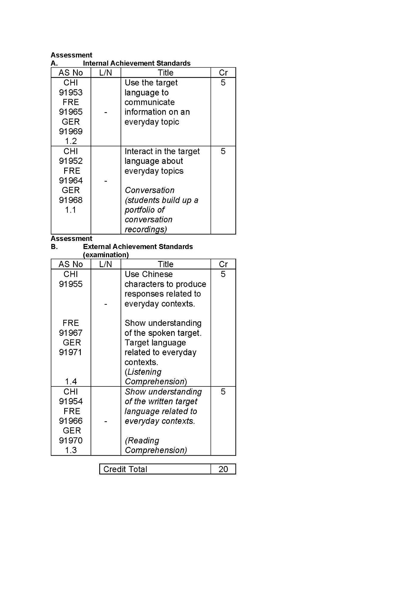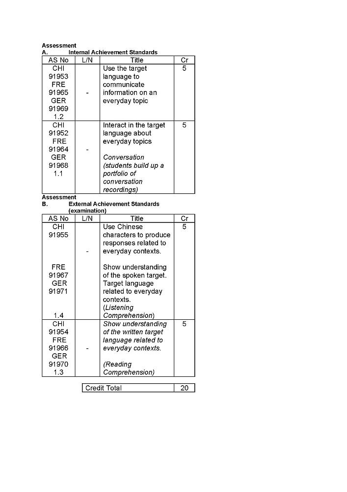 For each of the International Languages offered at Columba in 2025 (Chinese, French and German) there are two internally assessed Standards, worth 10 credits, and two externally assessed Standards worth 10 credits, making a total of 20 credits.