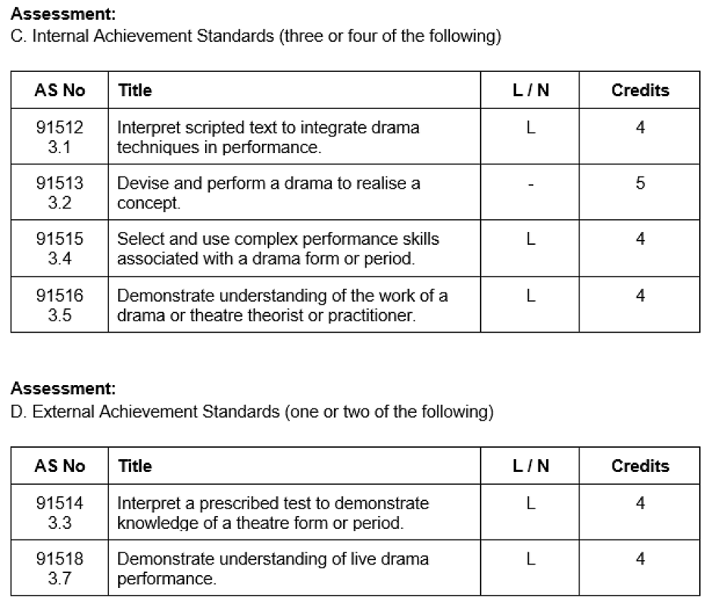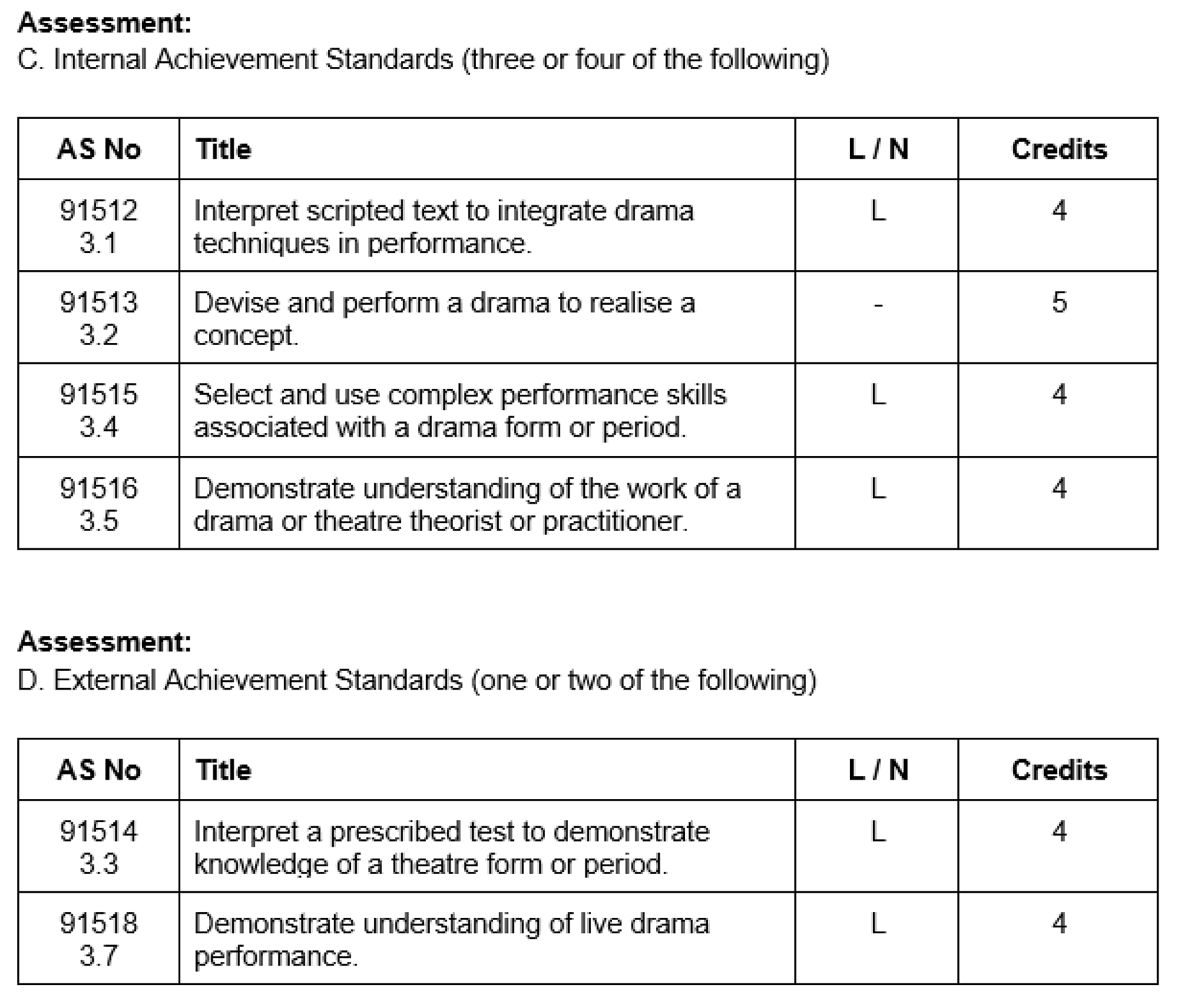 This course builds on skills gained in NCEA Level 2 drama. It requires work in-and-out of class time and further develops students' skills in devising, improvisation, theatre technology, acting, responding and reflecting on theatre practice, effective communication and group responsibility. Drama has strong links with English, History, Music, Dance and Classics.