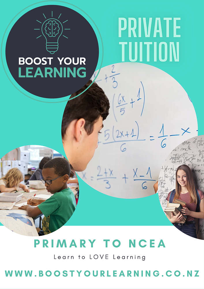 Would your child benefit from bespoke and nurturing learning sessions from a highly experienced teacher designed to accelerate learning and boost confidence? We would love to help. We are a team of dedicated teachers, specialising in English and Maths support, for primary, intermediate and college students. Visit www.boostyourlearning.co.nz for more information or contact Amy on 020 4031 6035 to book a free consultation.