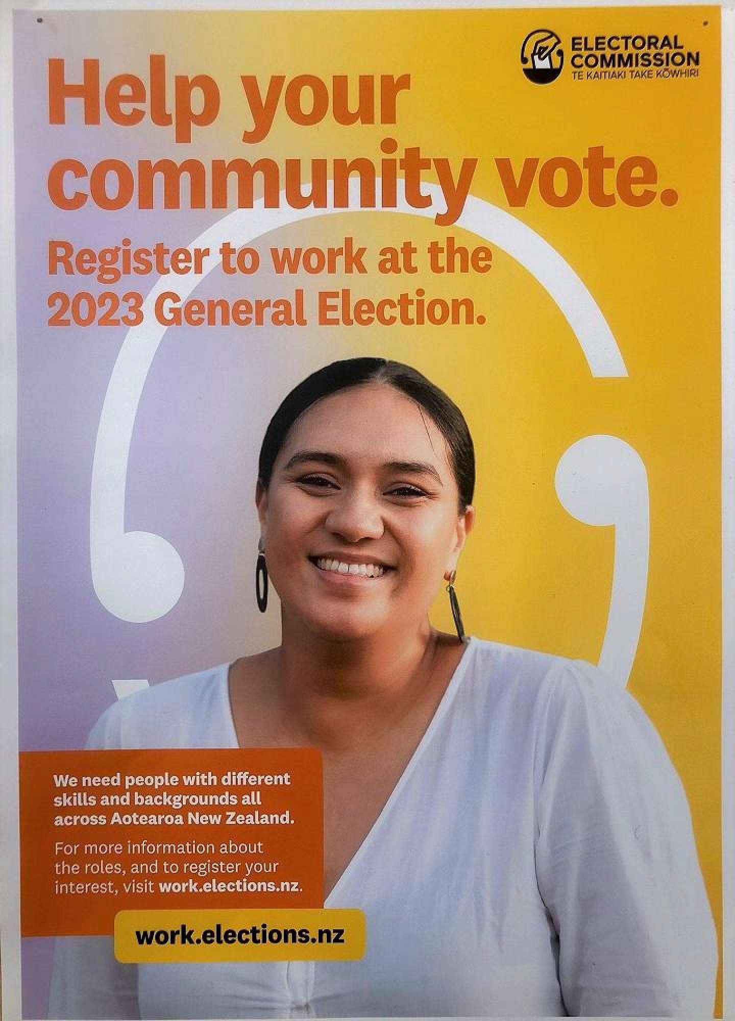 The Electoral Commission need people from different skills and backgrounds all across Aotearoa New Zealand. There are roles for people with no experience, right through to leadership opportunities. Whether you want casual, part-time or full time work, there may be a job at the election for you. For more information about the roles, and to register your interest in contributing to this important event visit :- work.elections.nz
