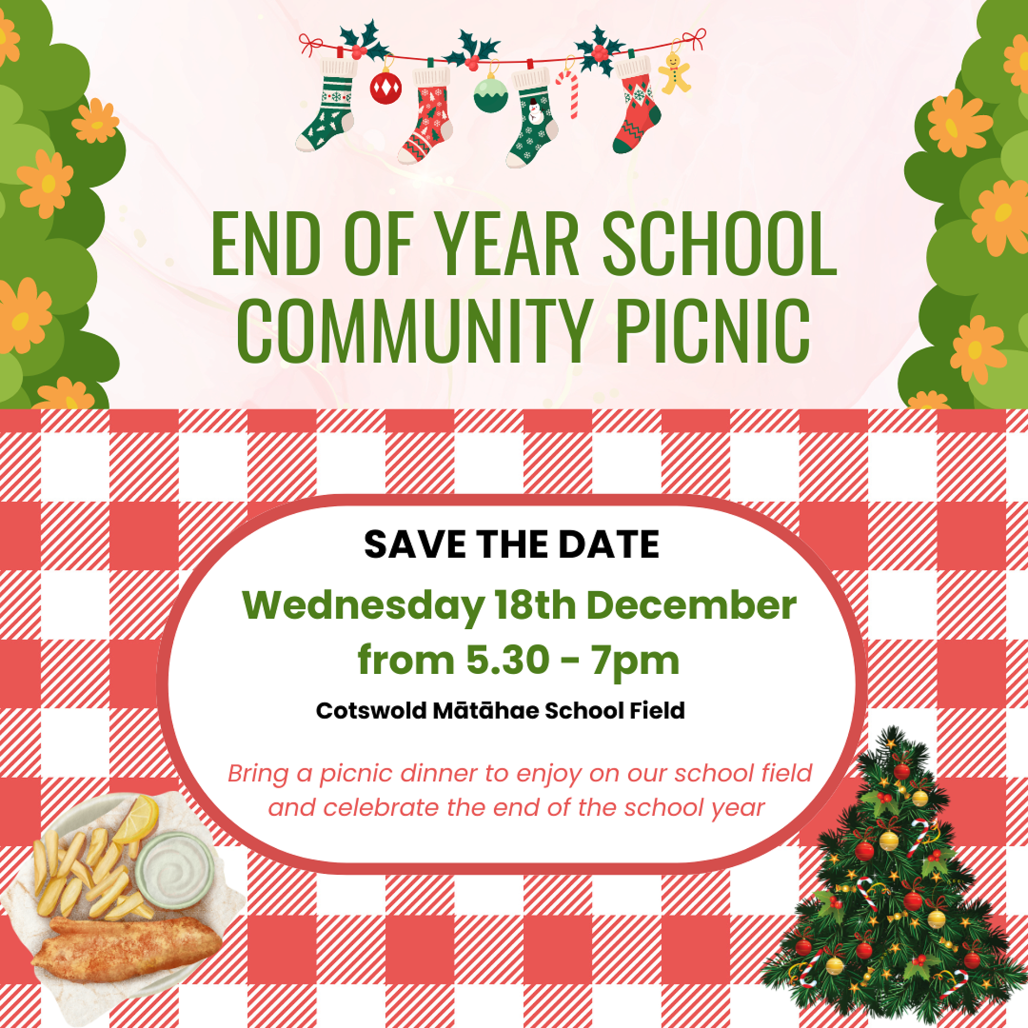 We look forward to seeing you all at tonight's End of Year Community Picnic, hope you can make it along.