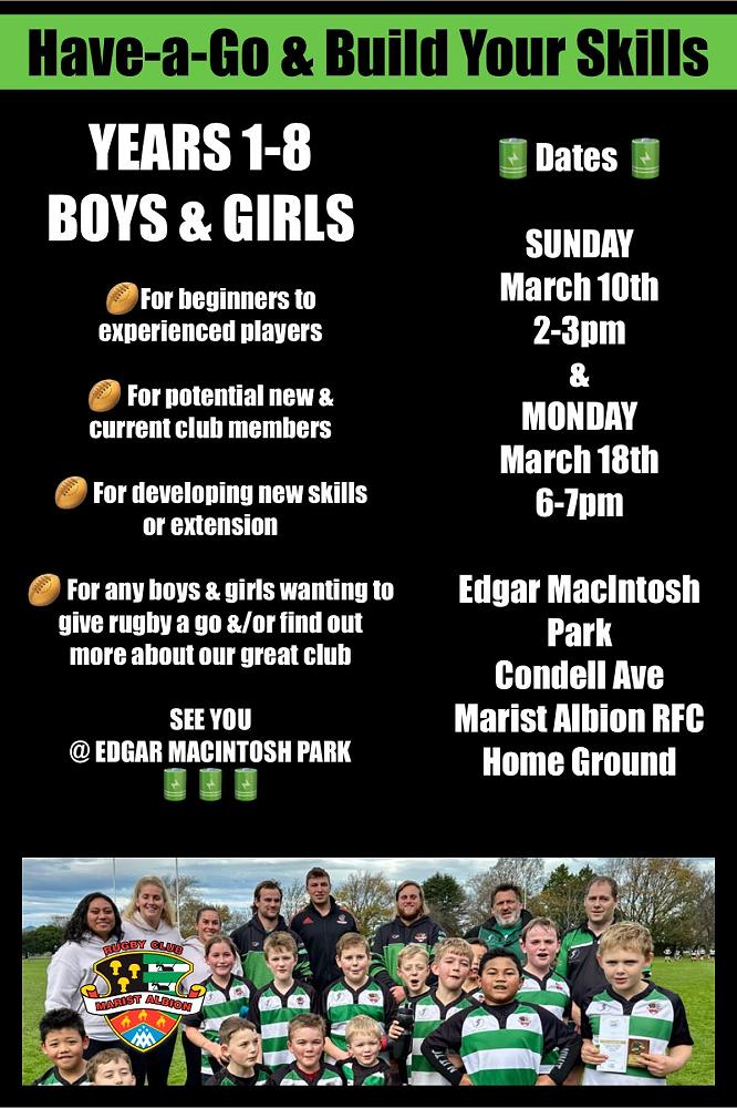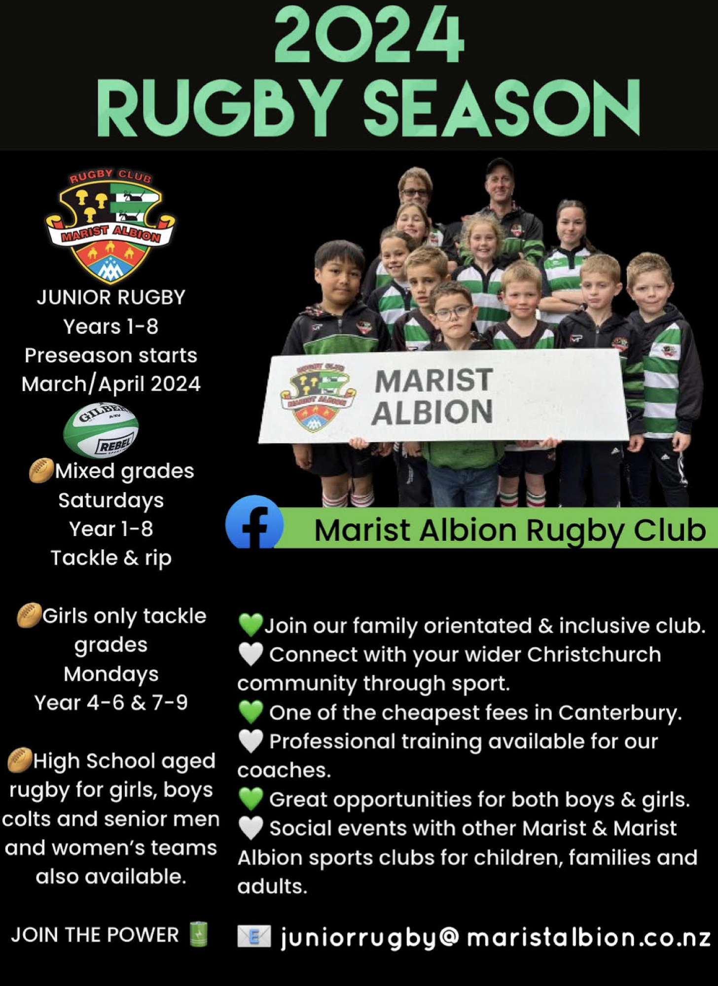 If you have any questions, please do not hesitate to ask me or look on our website (www.maristalbion.co.nz) or join our club facebook page for further updates (Search up: Marist Albion Rugby Club).