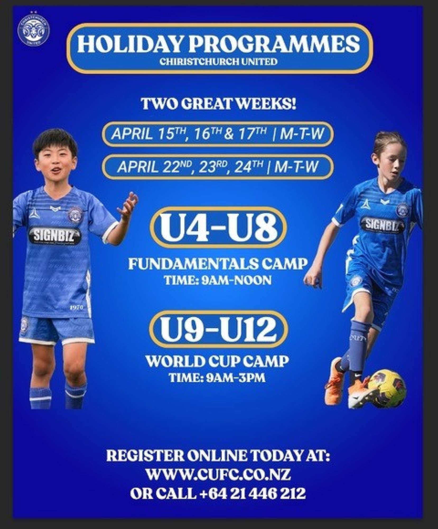 For more information on these holiday camps or to register online today, please go to https://cufc.co.nz/academy/holiday-program