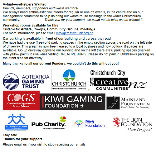 Please enquire at info@canvasbag.nz. or 021 222 7273 or check out our web page for fees and more information. www.canvasbag.nz