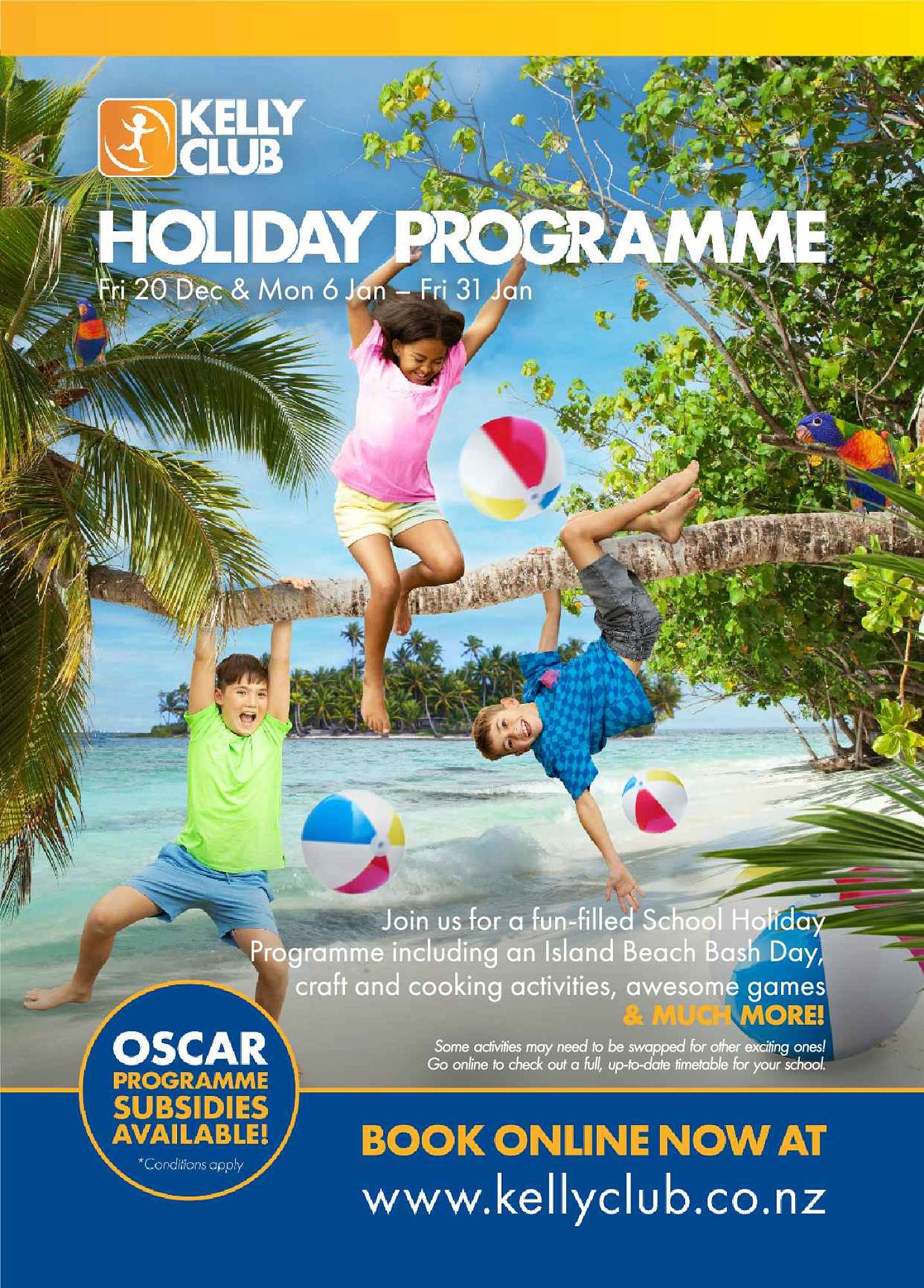 Join us for a full-filled School Holiday Programme including a Island Beach Bash Day, craft and cooking activities and awesome games.