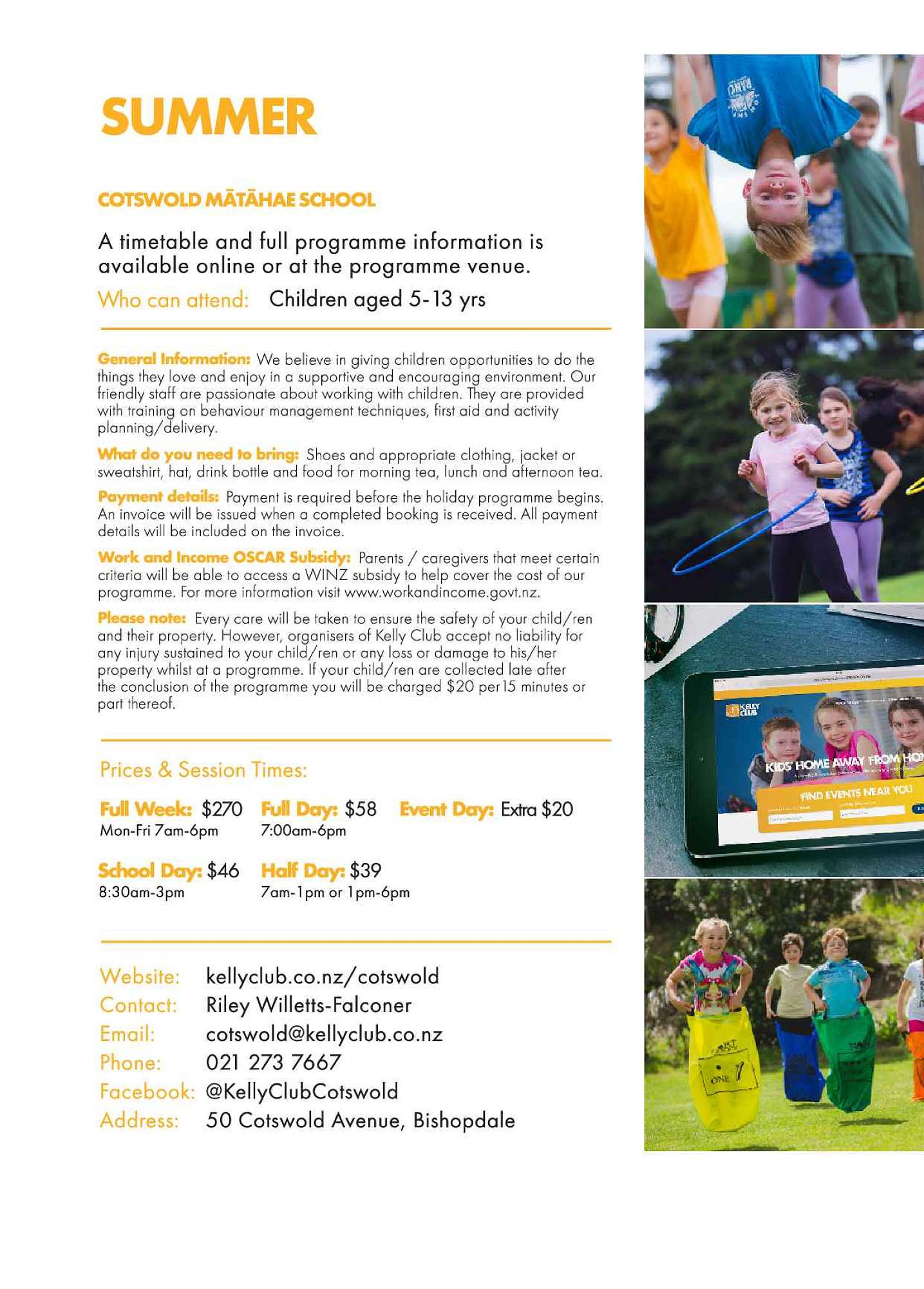 Kelly Club will be at Cotswold Mātāhae School over the school holidays running their fantastic School Holiday Programme between 20 Dec 2024 - 31 Jan 2025