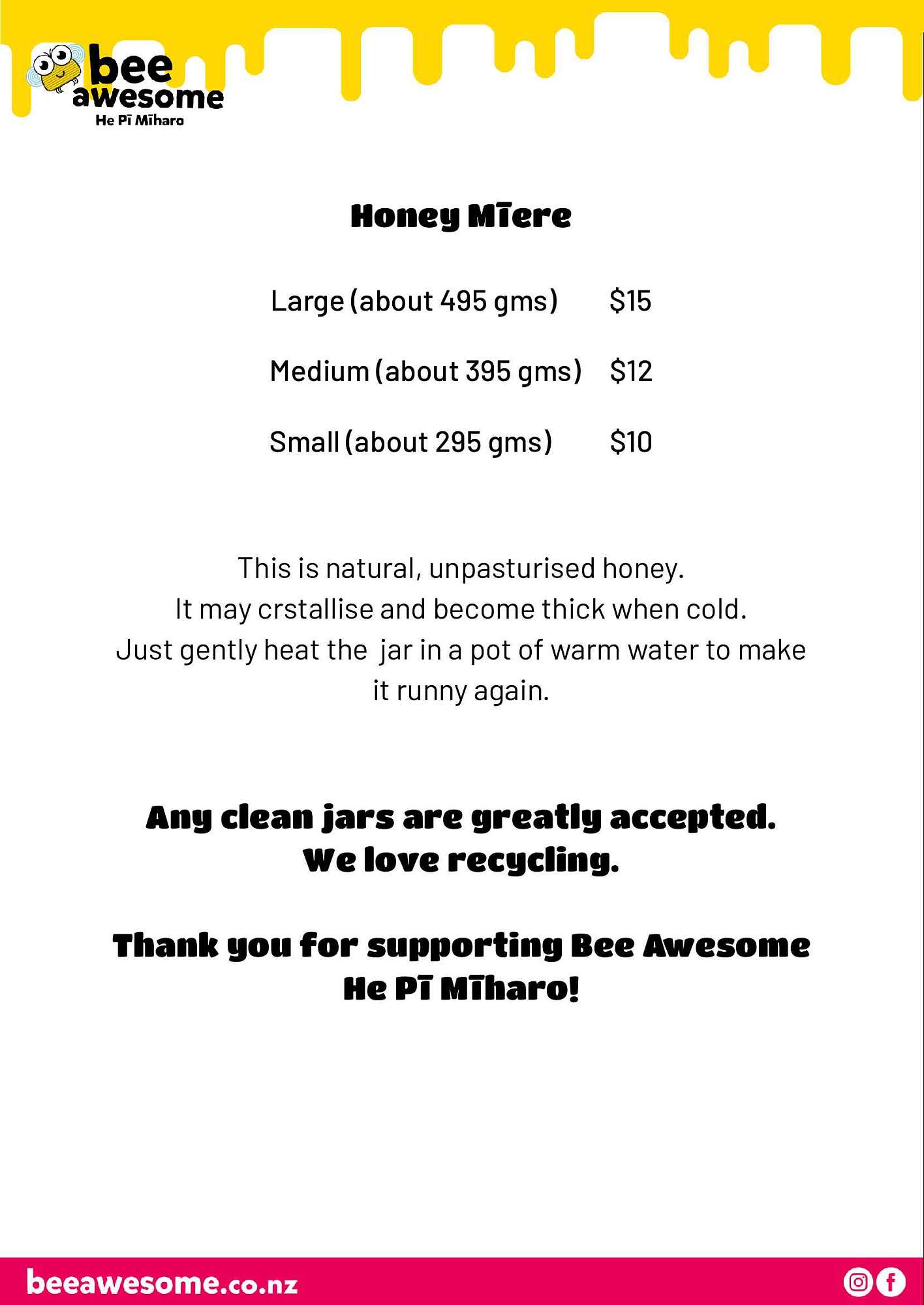 Jars Wanted : Please drop off clean jars (with lids) to the Office to be used to store the honey.
