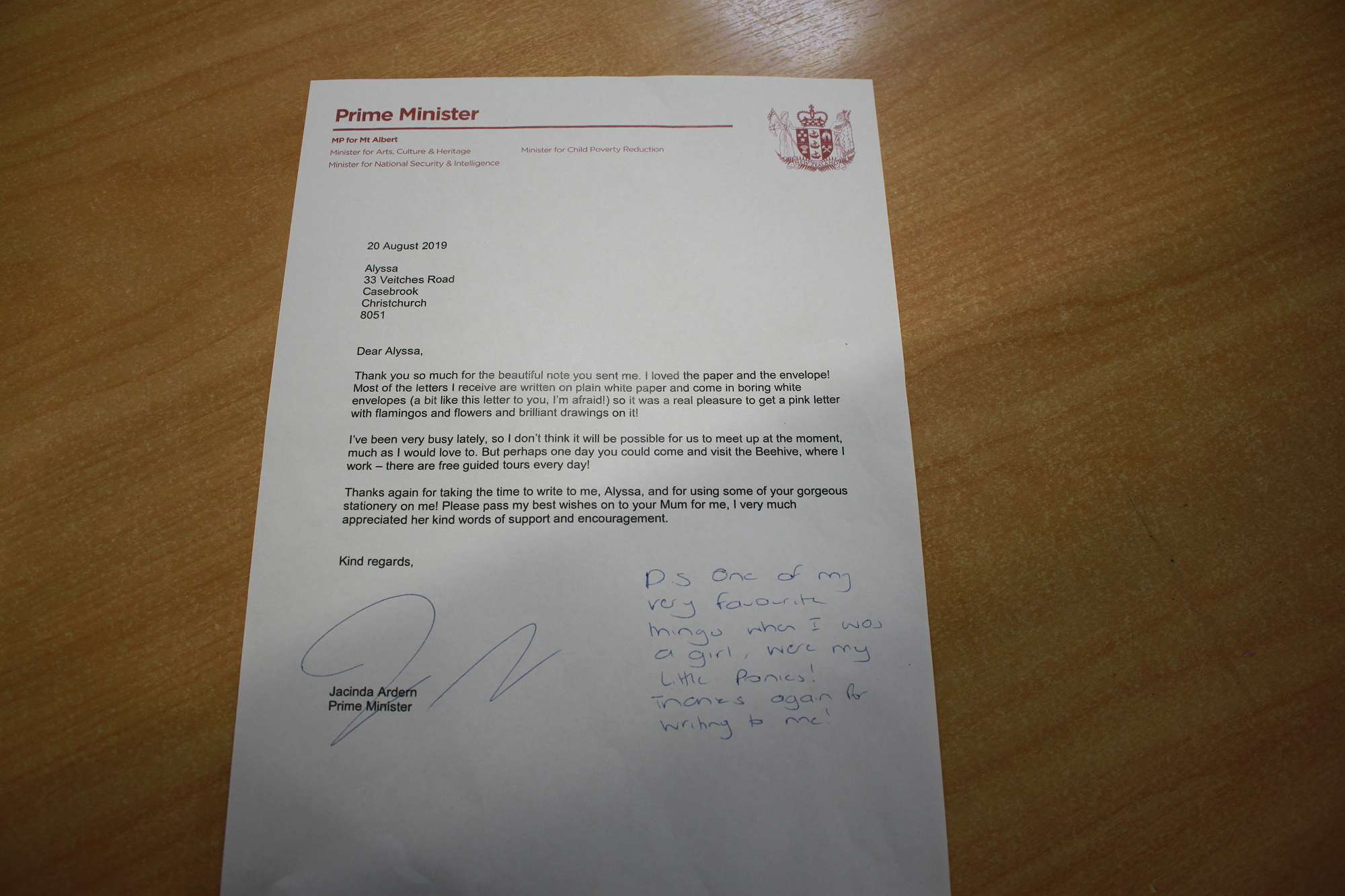 Alyssa from Room 6 recently received a lovely letter from Prime Minister, Jacinda Ardern.