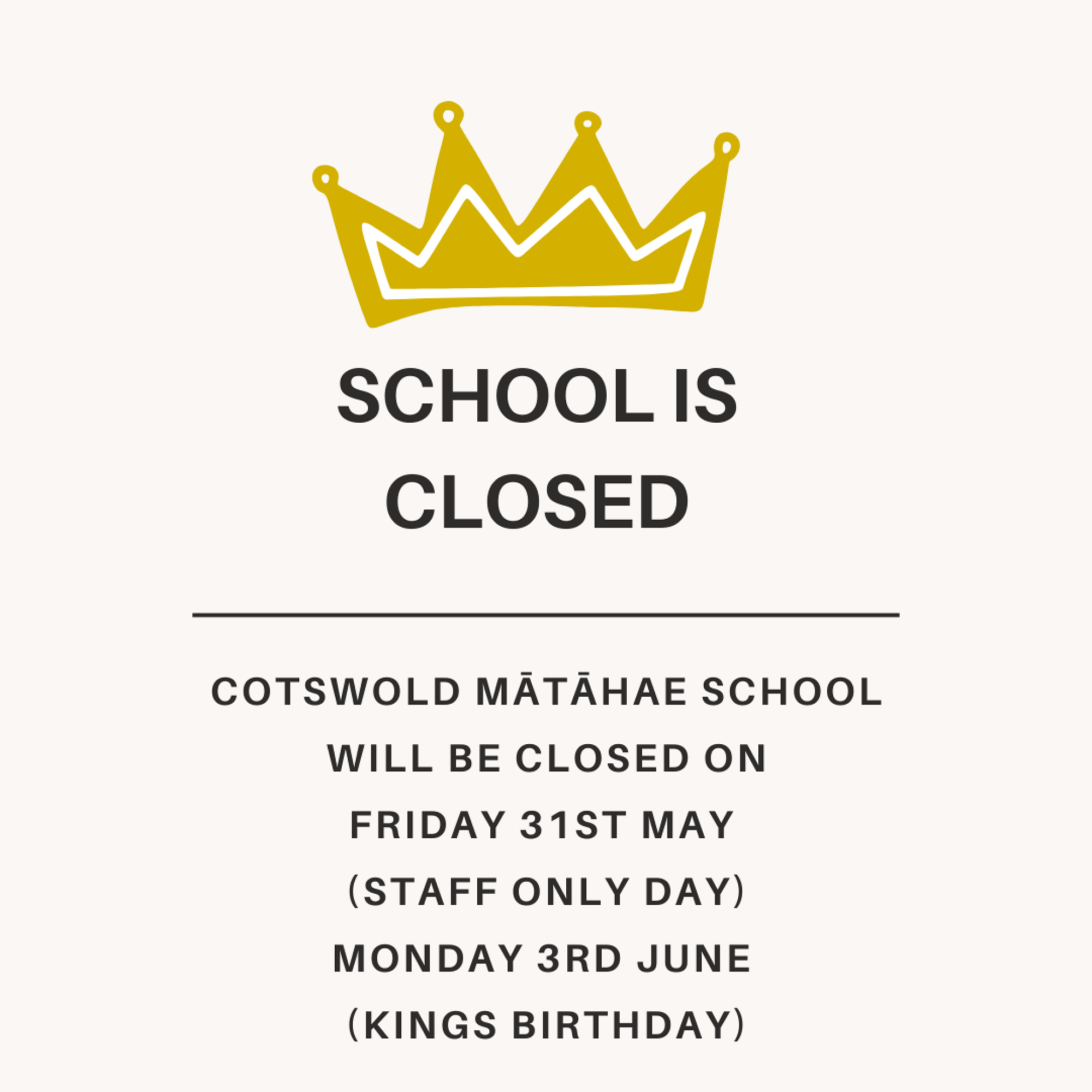 Just a reminder we will be holding our first Ministry of Education allocated Staff Only Day for the year on Friday 31st May and school will be closed on this day. We hope your whanau can enjoy an extended Kings Birthday long weekend.